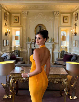 È ufficiale: il bandage è tornato — conosci Cleopatra. Realizzata in tessuto bandage a grammatura importante, scolpisce la figura e valorizza le curve, mentre le bretelle halter e la schiena a profonda scollatura rotonda aggiungono un tocco di sensualità. Il taglio midi essenziale completa una silhouette irresistibilmente sexy.