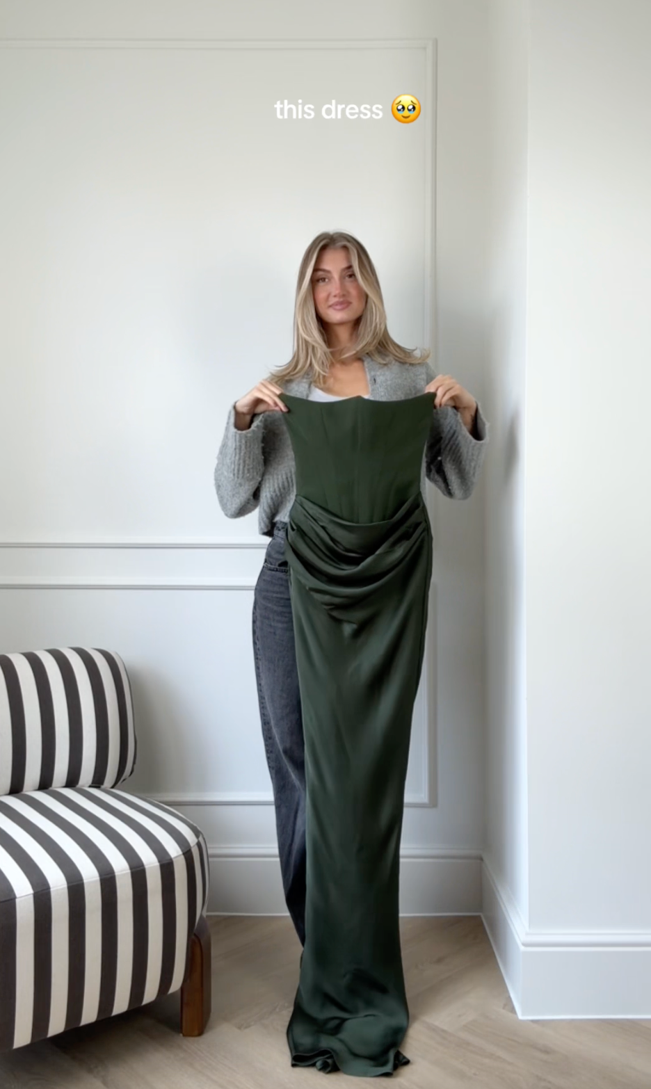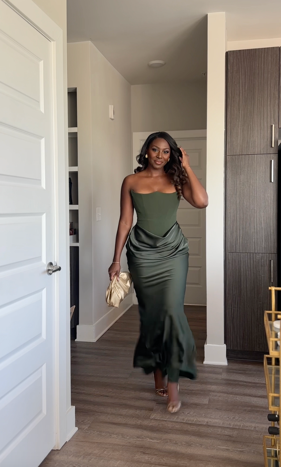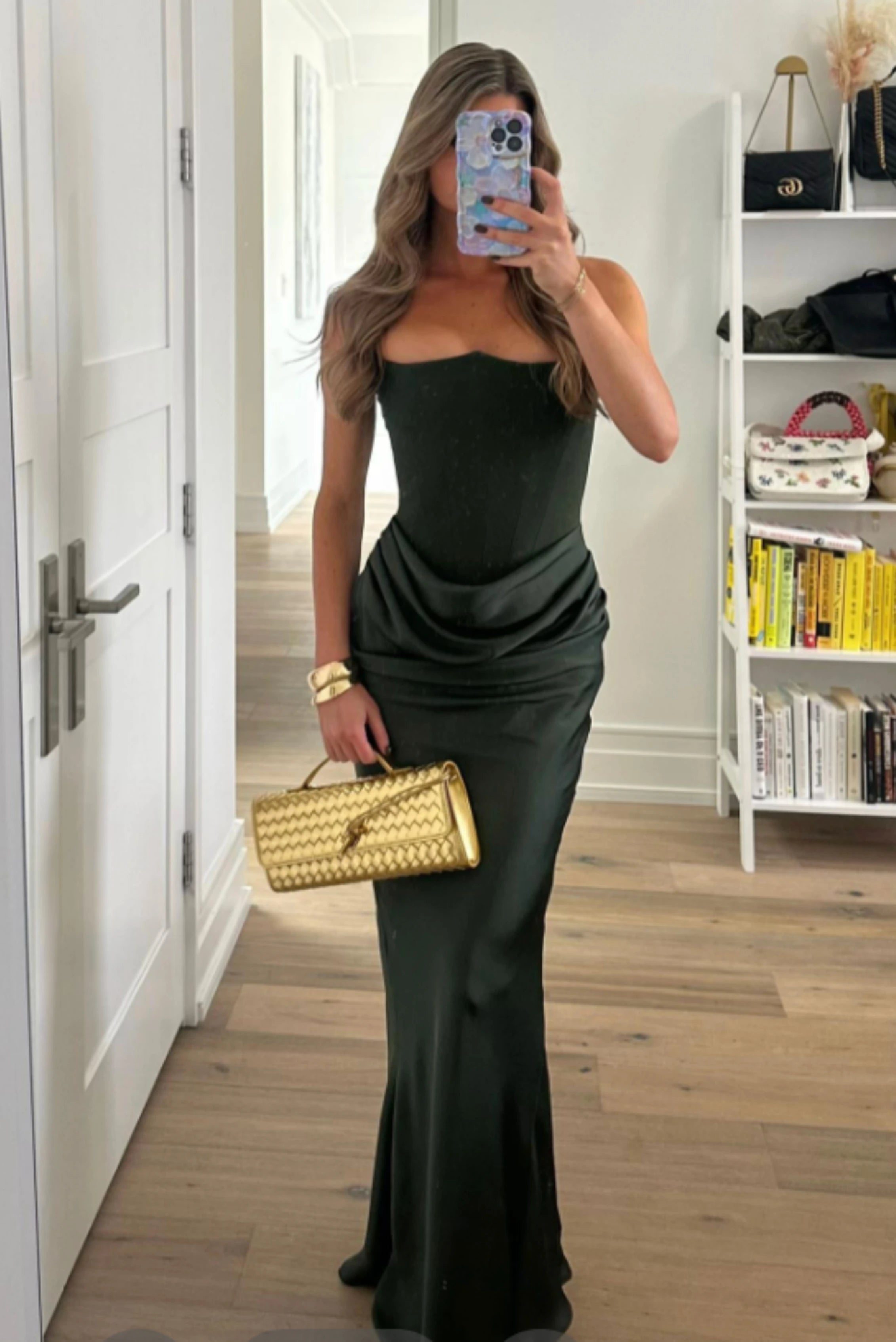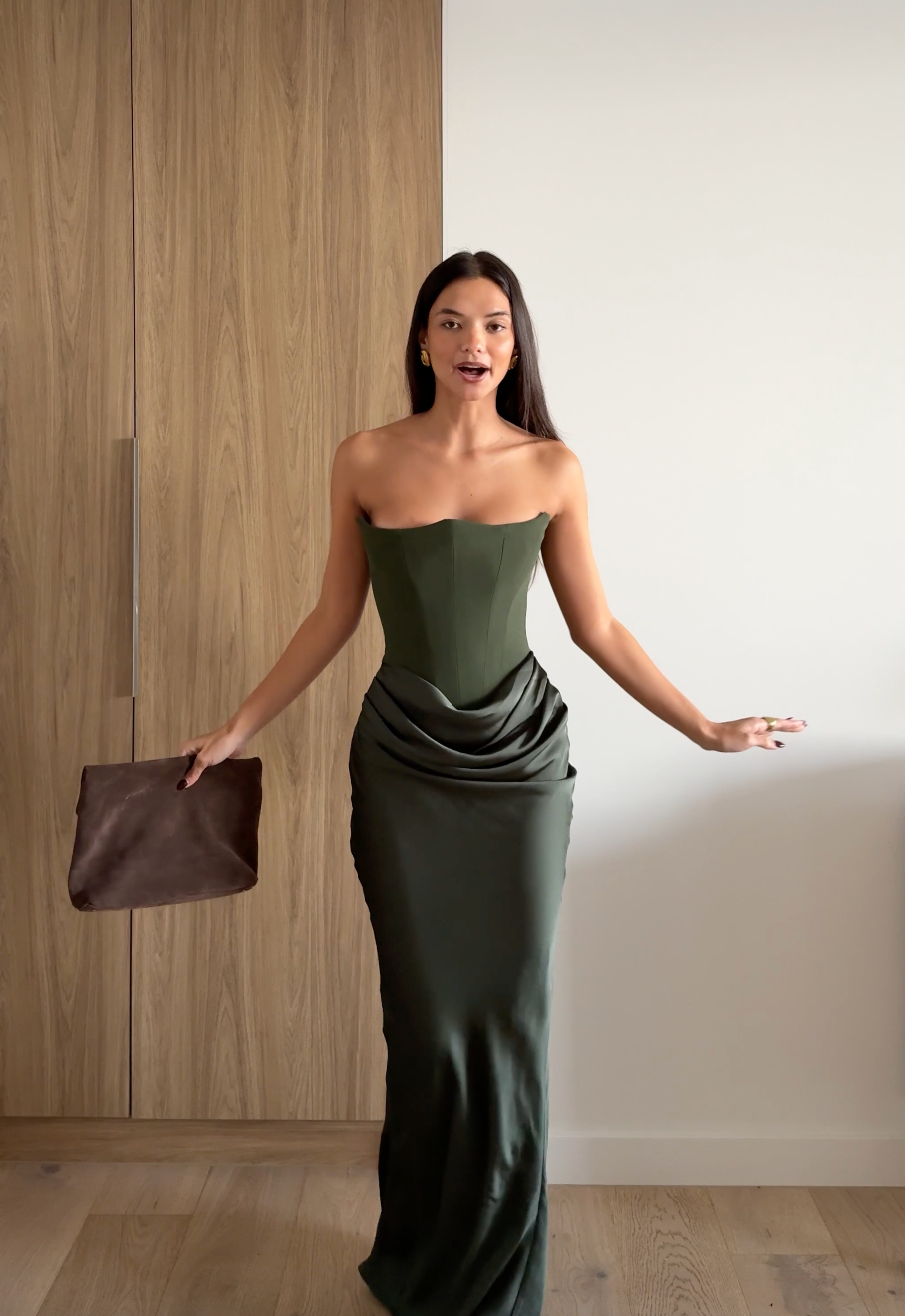 Forest Green Maxi Dress with Sculpted Strapless Corset